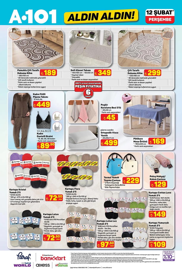 A101 Market 12 Şubat 2026 Perşembe gününden itibaren geçerli olacak Aldın Aldın kampanyasını yayınladı. A101 12 Şubat 2026 kataloğu ile bu hafta satışa sunulacak aktüel ürünler...