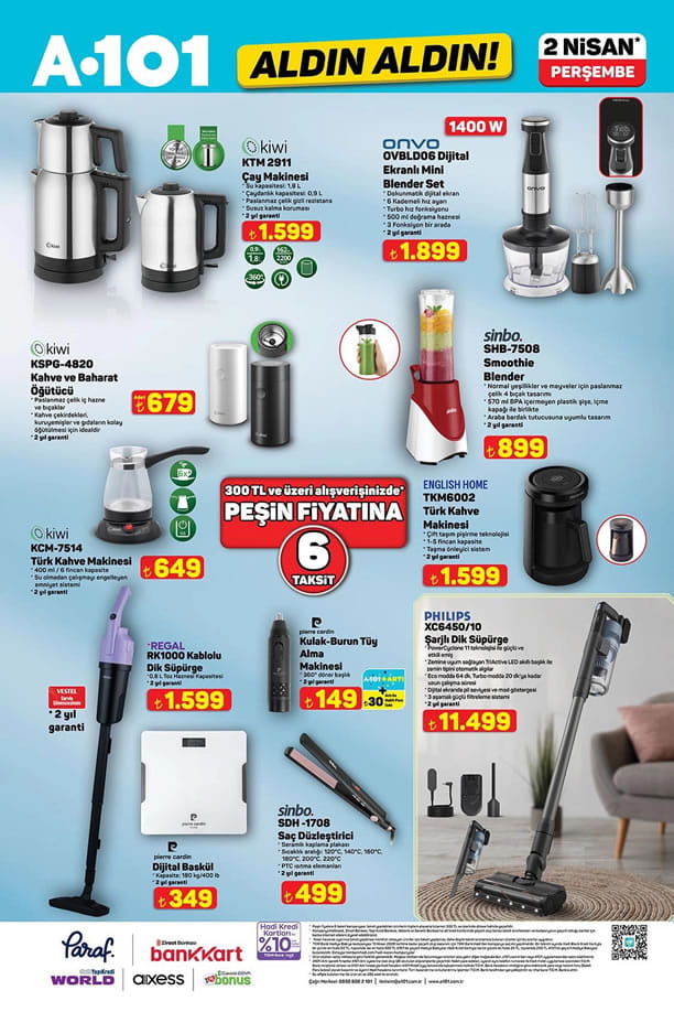 A101'de bu hafta 2 Nisan 2026 Perşembe gününden itibaren geçerli olacak Nisan ayının ilk aktüel ürünler kataloğu yayınlandı. A101 2 Nisan 2026 Aldın Aldın kataloğu...